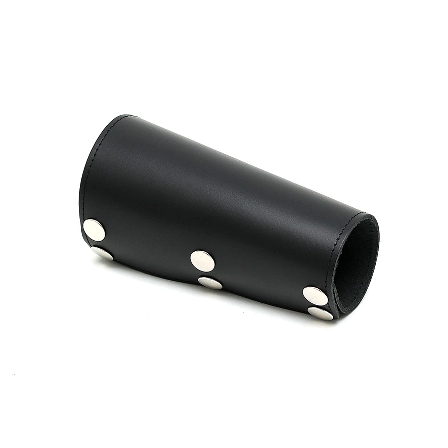 Echt tuiglederen armkap, verstelbaar in 3 maten met drukknopen.