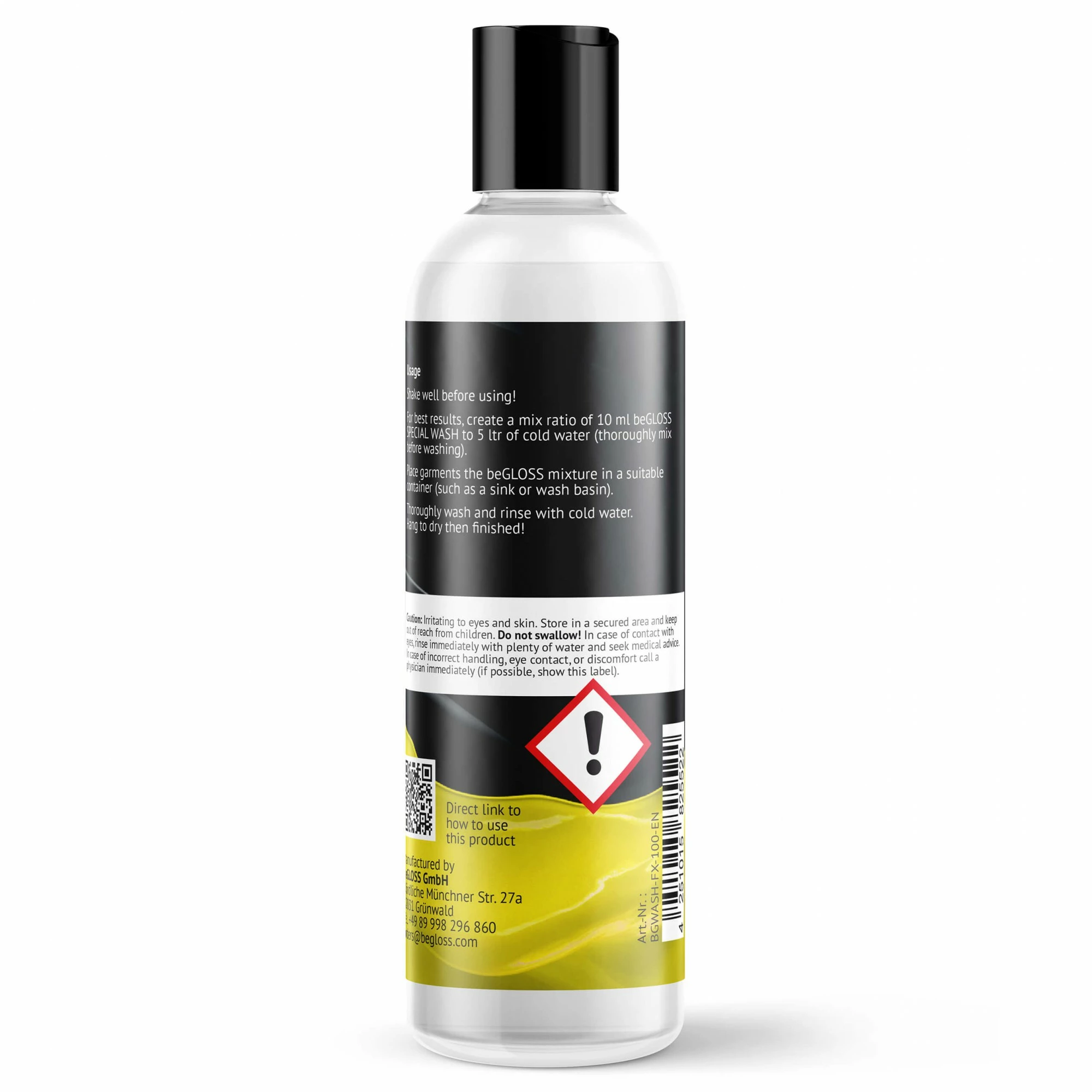 Het verwijdert vuil-, huid- en vetresten van kunstleren kleding. Het wasmiddel reinigt, verzorgt en beschermt in slechts enkele minuten. Het snelle speciale reinigingsproces is een perfecte kunstleerverzorging om de levensduur van kunstlederen kleding te verlengen. Kunstleerverzorging met de beGLOSS Special Wash kunstleerwasmiddel De juiste kunstleerverzorging met onze innovatieve reiniger, zodat zelfs hardnekkig vuil kan worden verwijderd.