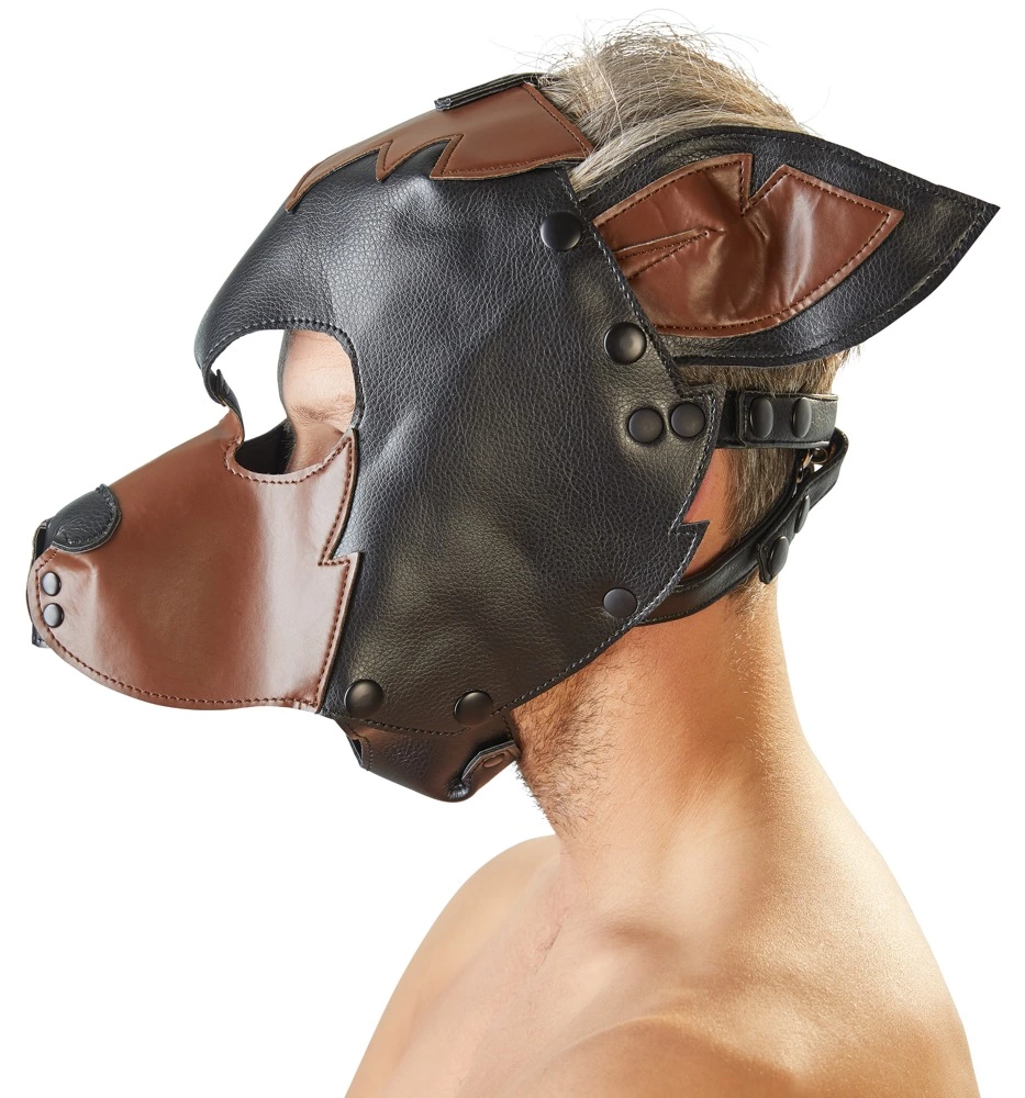 High-Quality dog mask made out of imitation leather. The strap around the back of the head can be adjusted with press studs for a perfect fit.