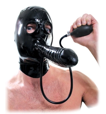Give Face-Time a whole new meaning with this inflatable penis latex hood! With each squeeze of the medical-style pump ball, the 5.5 inch latex dildo inflates and gets thicker and wider. Once inserted, the inflatable dildo expands inside your subject, creating intense sensations and filling you both with pleasure. Sit on your their face and get up close and personal like never before! The form-fitting latex hood zips in the back and allows your subject to see and breathe, while the gag inside the hood prevents the wearer from saying a word. To relieve the pressure, simply turn the quick-release valve and the inflatable dong deflates.