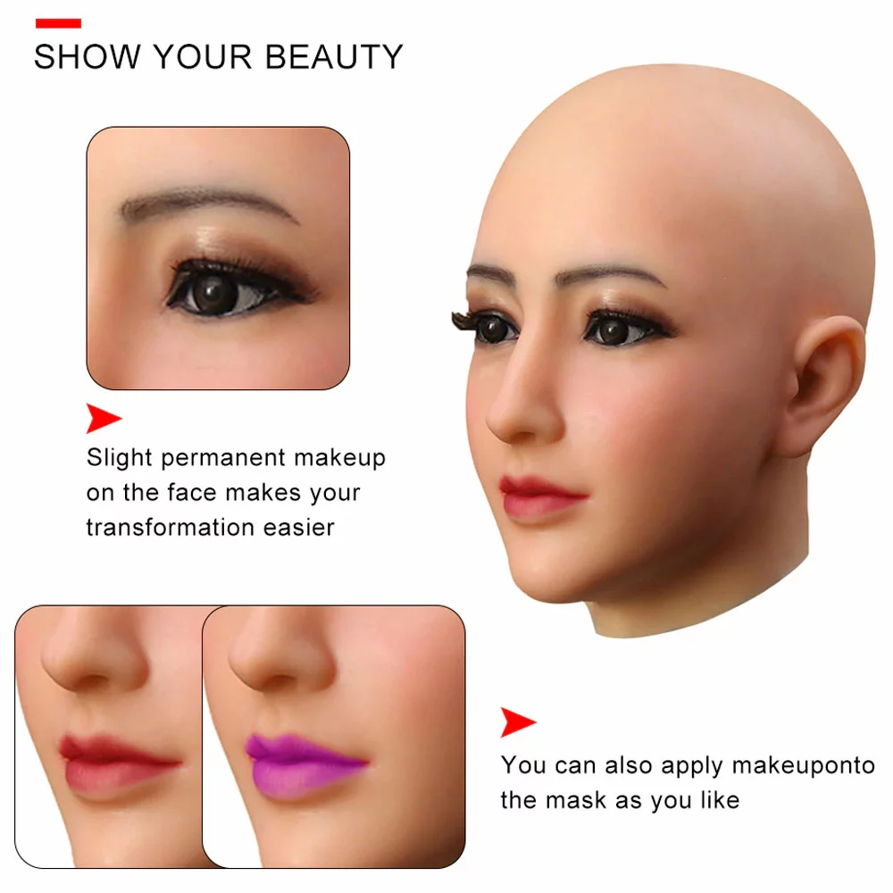 Verander jezelf in een echte mooie vrouw! Dit masker heeft geen rits nodig. Het is erg elastisch en je kunt je make-up, wimpers of wat je maar wilt aanbrengen om je vrouwelijk gevoel helemaal compleet te maken.