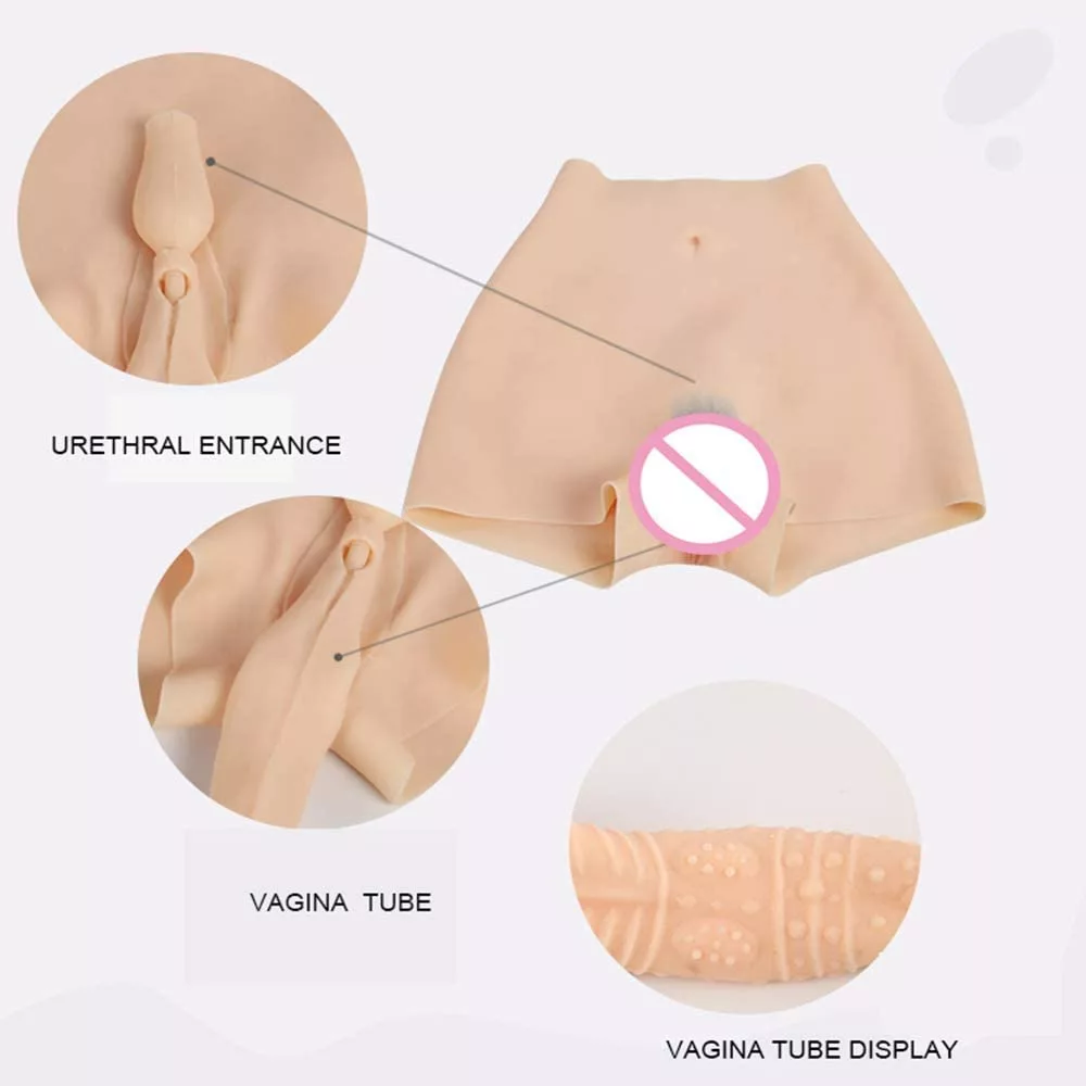 Transseksuele volledige siliconen vagina broek met vagina katheter sleeve