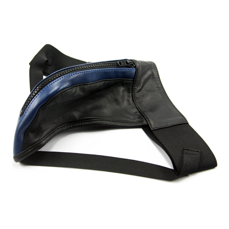 Tough and stylish! This heavy duty jockstrap from HG Leather Creations features top quality leather, zip closure on the front and wide elastic bands around the legs and at the back to ensure an optimal fit. Available with black, red, white or blue detailing along the zipper.