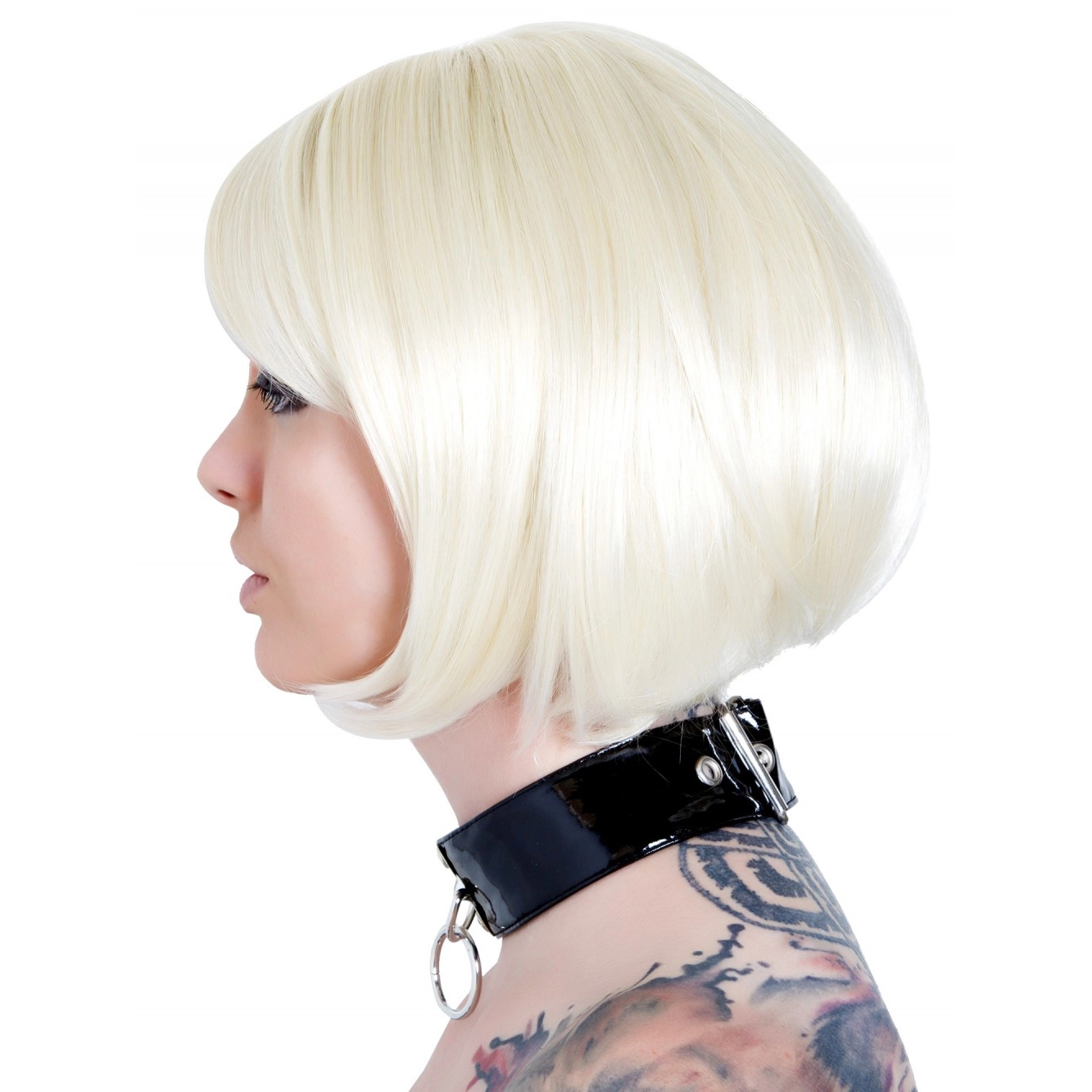 Stijlvolle lak halsband met O-ring aan de voorkant en gesp aan de achterkant. Het perfecte accessoire voor elke fetisj outfit!