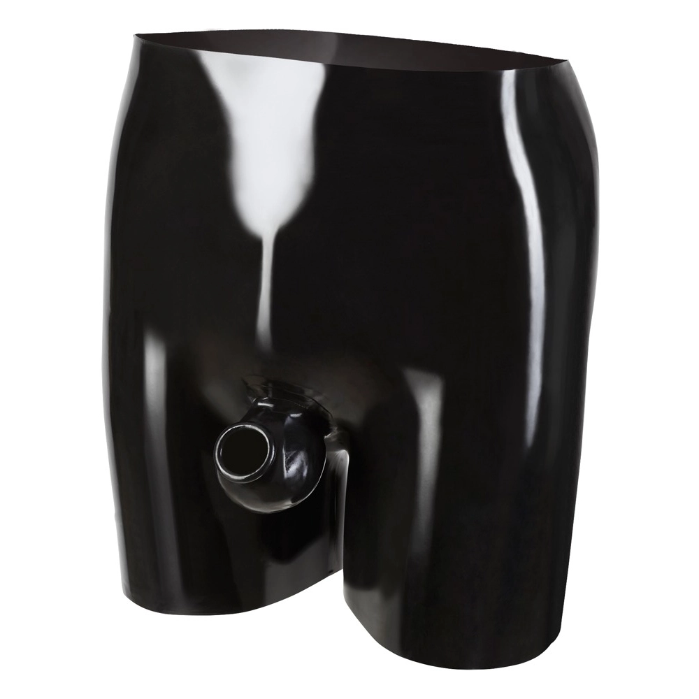 Zwarte latex boxer die jouw onthulde penis in de kijker zet. Met vastgelijmde buidel voor je ballen en geïntegreerde cockring. Voor een mannelijke en extreem erotische look. Omtrek v.d. buidel: 16 cm, Ø binnenkant cock ring 3 cm, latex dikte 0.35 cm.