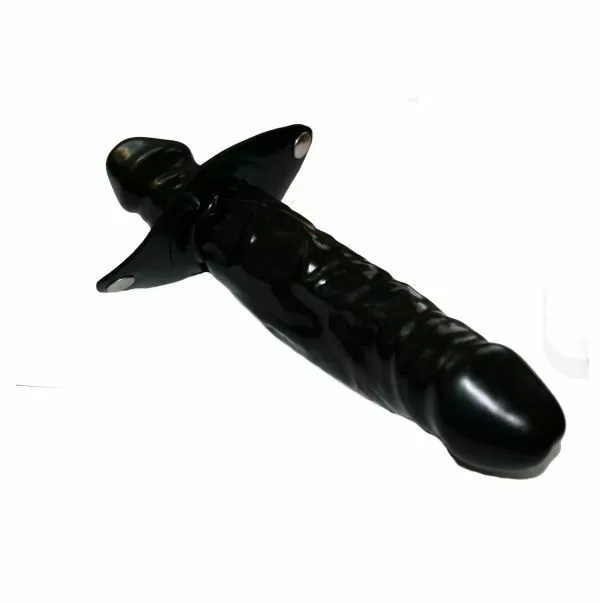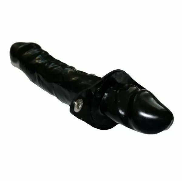 Anita Berg latex mask with latex dildo gag and blinder and with nose openings. The penis gag is made of latex and the inner part is filled with PU foam (polyurethane). Mask is with zipper.