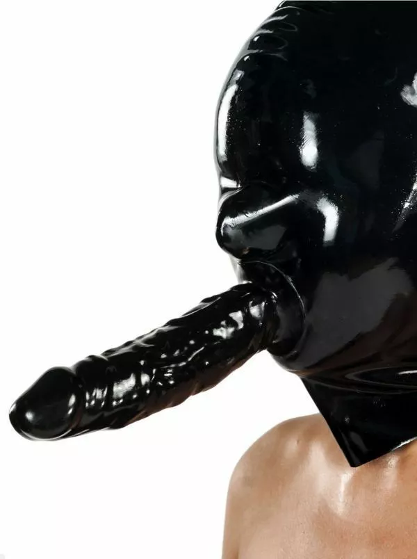 Anita Berg latex masker met latex dildo Masker, geheel gesloten, enkel met 2 neusgaten. De penis sleeve is gemaakt van latex en het binnenste gedeelte is gevuld met PU schuim (polyurethaan). Het masker heeft geen ritssluiting.