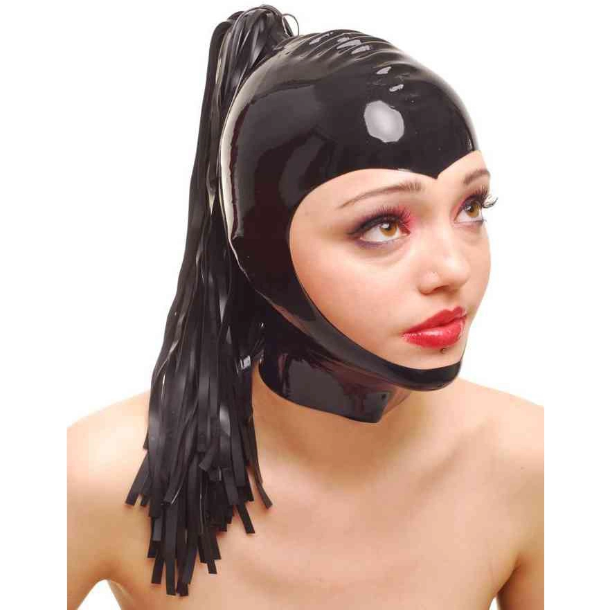 Anita Berg latex masker met paardenstaart gemaakt van latex Masker met 30cm rits.