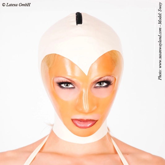 Een moderne versie van het klassieke latex masker. Dit stijlvolle masker heeft een contrasterend gezicht en rits achterzijde, 0,4mm Latex.