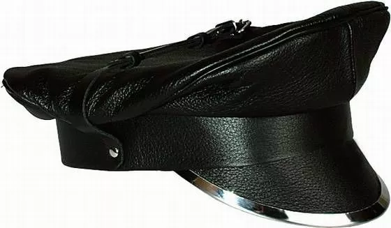 Verstelbare, gevoerde nappa lederen pet, afgewerkt met fraaie mataalrand aan de voorzijde.