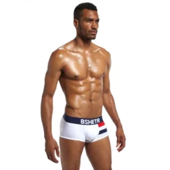 Sexy Heren Boxershort met strakke pasvorm, gemaakt van luchtig, comfortabel & en fluweelzacht katoen in wit met blauw/rode detailering en een brede zwarte tailleband.