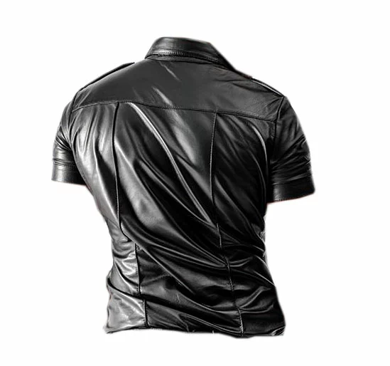 Gemaakt van het zachtste leer dat op de markt verkrijgbaar is en handgemaakt in onze leerwerkplaats van zacht schapenleer dat meer rekbaar is. Deze shirts zijn getailleerd zodat ze mooi de contouren van je bovenlichaam volgen, aangezien een sexy look niet goed te combineren is met baggy shirts. Onze lederen politie shirts hebben korte mouwen, epauletten en twee borstzakken.