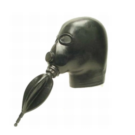 Studio Gum oranje, zwart of semi-transparante Latex Gas Mask Hood GMH2b met in-en uitlaat klep