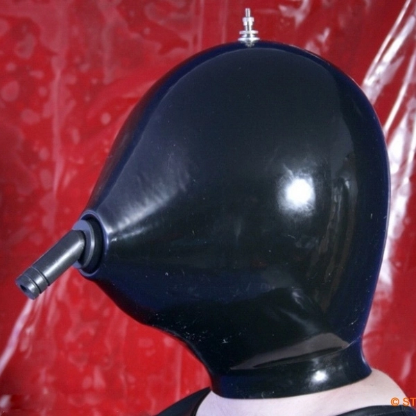 Zwarte zware rubber Latex Helm uit de NKMb–serie vanStudio Gum verkrijgbaar in 4 modellen: