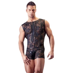 Deze zwarte body met ritssluiting overtuigt iedereen door zijn spannende combinatie van elastisch, sierlijk kant met smalle wetlook strepen. Met de indrukwekkende zwel functie kunt u uw penis meer volumineus maken. Breng de penis en testikels door het binnenste rekgat in de slip naar voren. Voorste slip gedeelte kan verwijderd worden met drukknopen.