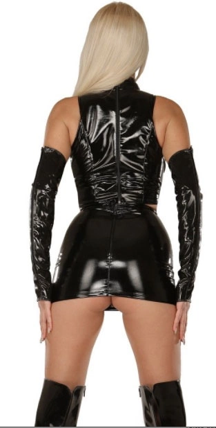 Bovenarmlengte, vingerloze handschoenen met duimlus. Voorzien van ritssluiting.