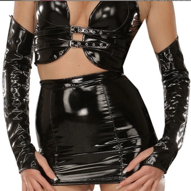 Bovenarmlengte, vingerloze handschoenen met duimlus. Voorzien van ritssluiting.